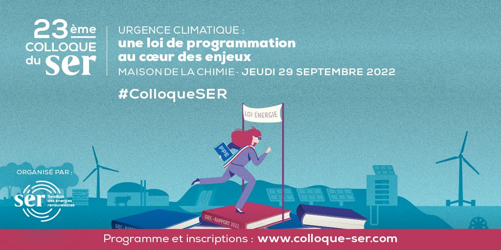 Intitulée "Urgence climatique : une loi de programmation au cœur des enjeux", et placée sous le haut patronage de Monsieur Emmanuel MACRON, Président de la République, la 23ème édition du Colloque annuel du Syndicat des énergies renouvelables se déroulera le jeudi 29 septembre 2022 à la Maison de la Chimie à Paris.
