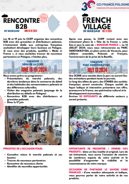 La CCIF Pologne revient avec son évènement phare la "Fête de la France", cette fois-ci sous le nom de "Bonjour France".