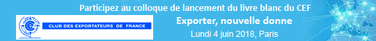 Dans le cadre du lancement de son livre blanc de l’export, le Club des Exportateurs de France (CEF) organise un colloque le 4 juin à Paris sur le thème « exporter, nouvelle donne ».