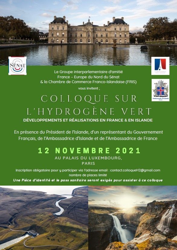 Le Groupe Interparlementaire d’Amitié France Europe du Nord du Sénat et la CCIF Islande organisent un Colloque sur l'hydrogène vert le 12 novembre, au Palais du Luxembourg à Paris.