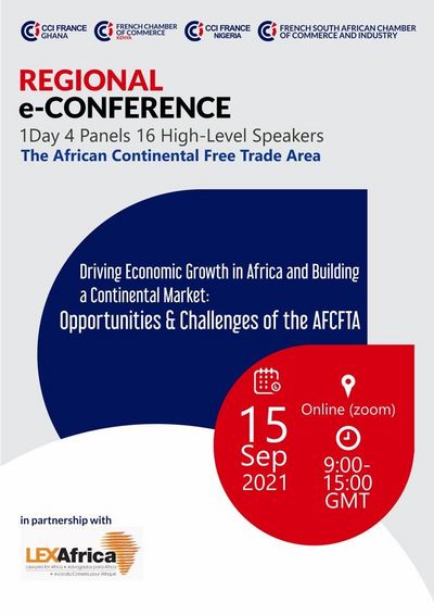 Les CCI Françaises d’Afrique du Sud, du Ghana, du Kenya et du Nigeria s’associent pour une conférence régionale exceptionnelle le mercredi 15 septembre prochain sur le thème "Croissance économique et marché continental en Afrique : enjeux et opportunités de la ZLECAf", en partenariat avec LEX Africa, plus grand réseau juridique d’Afrique.