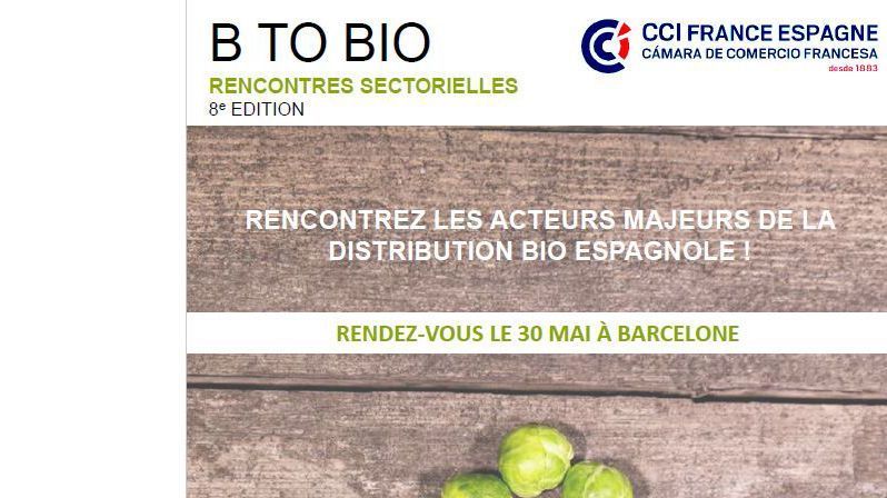 B to Bio est un événement incontournable permettant aux entreprises françaises, fabricants de produits bio (agro-alimentaires, cosmétiques, compléments alimentaires, aliments “sans”) de nouer des contacts avec des distributeurs/grossistes et enseignes espagnols intéressés pour élargir leur gamme bio.