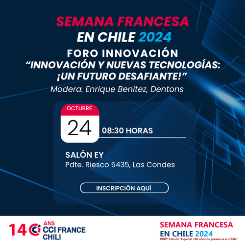 La CCIF Chili organise un Business Forum intitulé : "Innovation et nouvelles technologies, les défis du futur", dans le cadre de la Semaine Française au Chili 2024 (spéciale 140 ans).