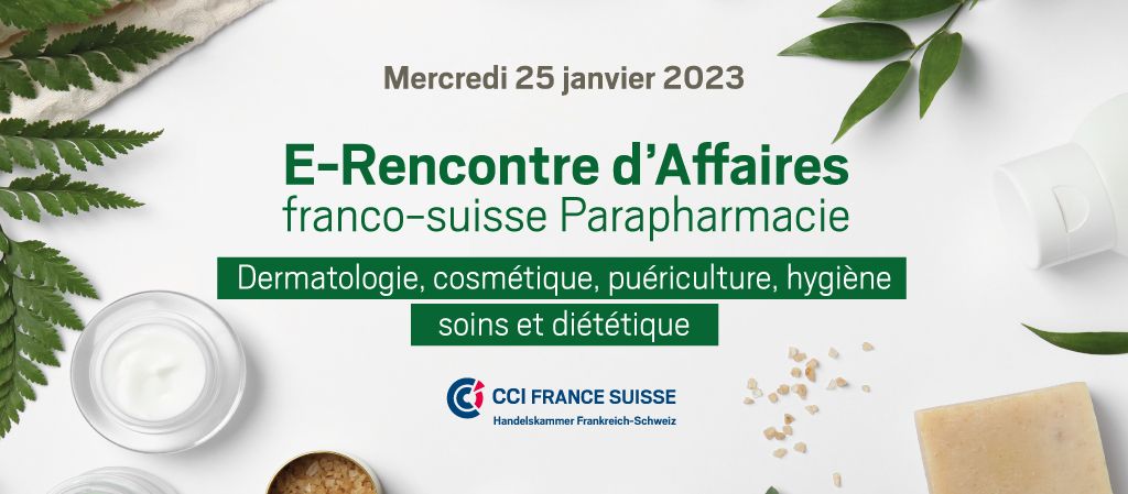 La CCI France Suisse vous donne ainsi rendez-vous le 25 janvier 2023 pour une E-Rencontre d’Affaires Franco-Suisse dédiée au secteur de la Parapharmacie, afin de développer vos contacts et ainsi faciliter votre développement en Suisse ! Un format 100% digital !