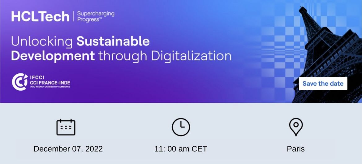 La CCI France Inde (IFCCI) organise, en collaboration avec HCLTech, l'un des plus gros investisseurs indiens en France, la 4ème édition de son forum sur la thématique : “Unlocking Sustainable Development through Digitalisation” le mercredi 7 décembre 2022 de 11h00 au 13h00 à Paris.