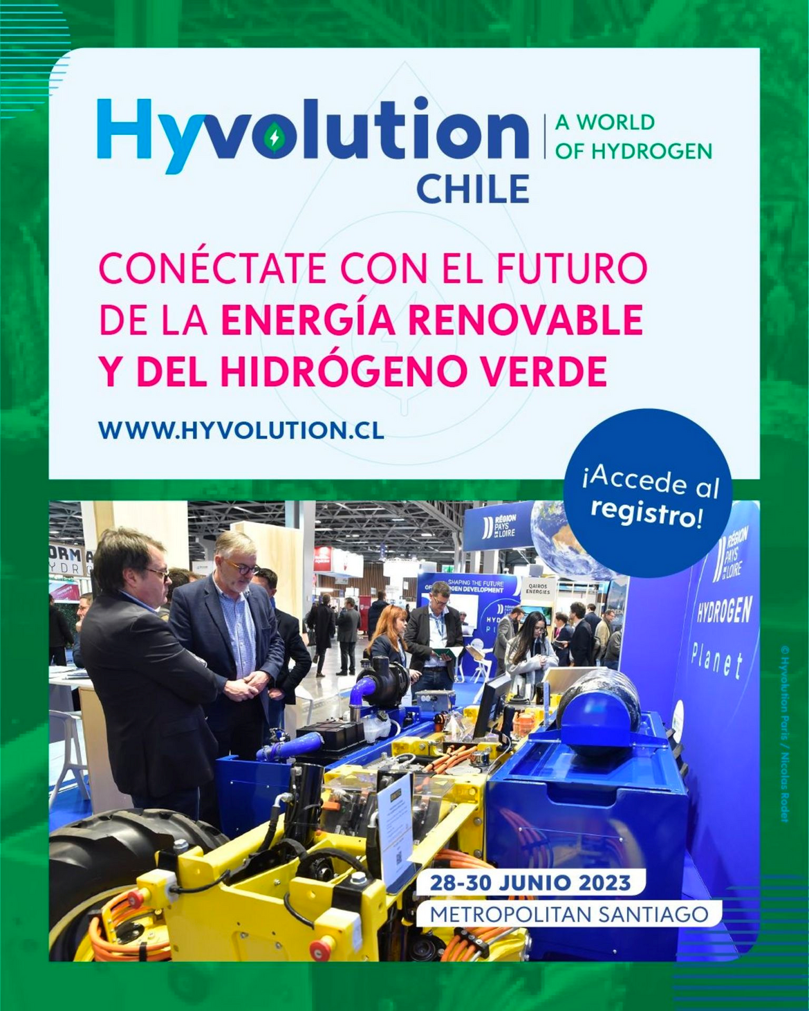 Pendant 3 jours, du 28 au 20 juin 2023, nous vous proposons de découvrir tout l’écosystème local et international de l’Hydrogène : autorités publiques et privées, grandes entreprises françaises et/ou start ups leaders sur ces marchés, investisseurs, acheteurs, incubateurs, et universitaires, associations grémiales d’importance et enfin institutions financières françaises œuvrant pour le développement de conditions favorables à l’investissement étranger au Chili, dans le cadre du Plan National de l’Hydrogène au Chili.