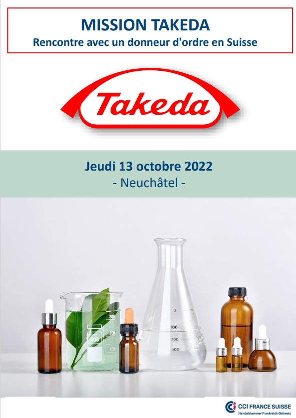 La CCIF Suisse vous donne rendez-vous le jeudi 13 octobre 2022 à Neuchâtel pour une occasion unique de rencontrer les décideurs du groupe TAKEDA