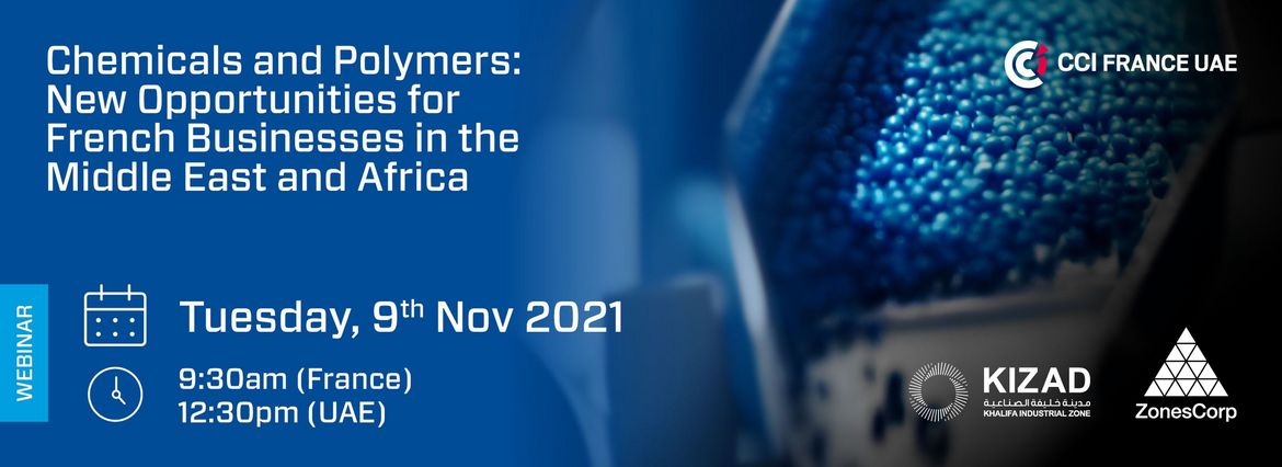 C'est pourquoi la CCIF EAU - Abu Dhabi organise, en collaboration avec KIZAD, un webinaire sur le thème : "Produits chimiques et polymères : de nouvelles opportunités d’implantation commerciale au Moyen-Orient et en Afrique".
