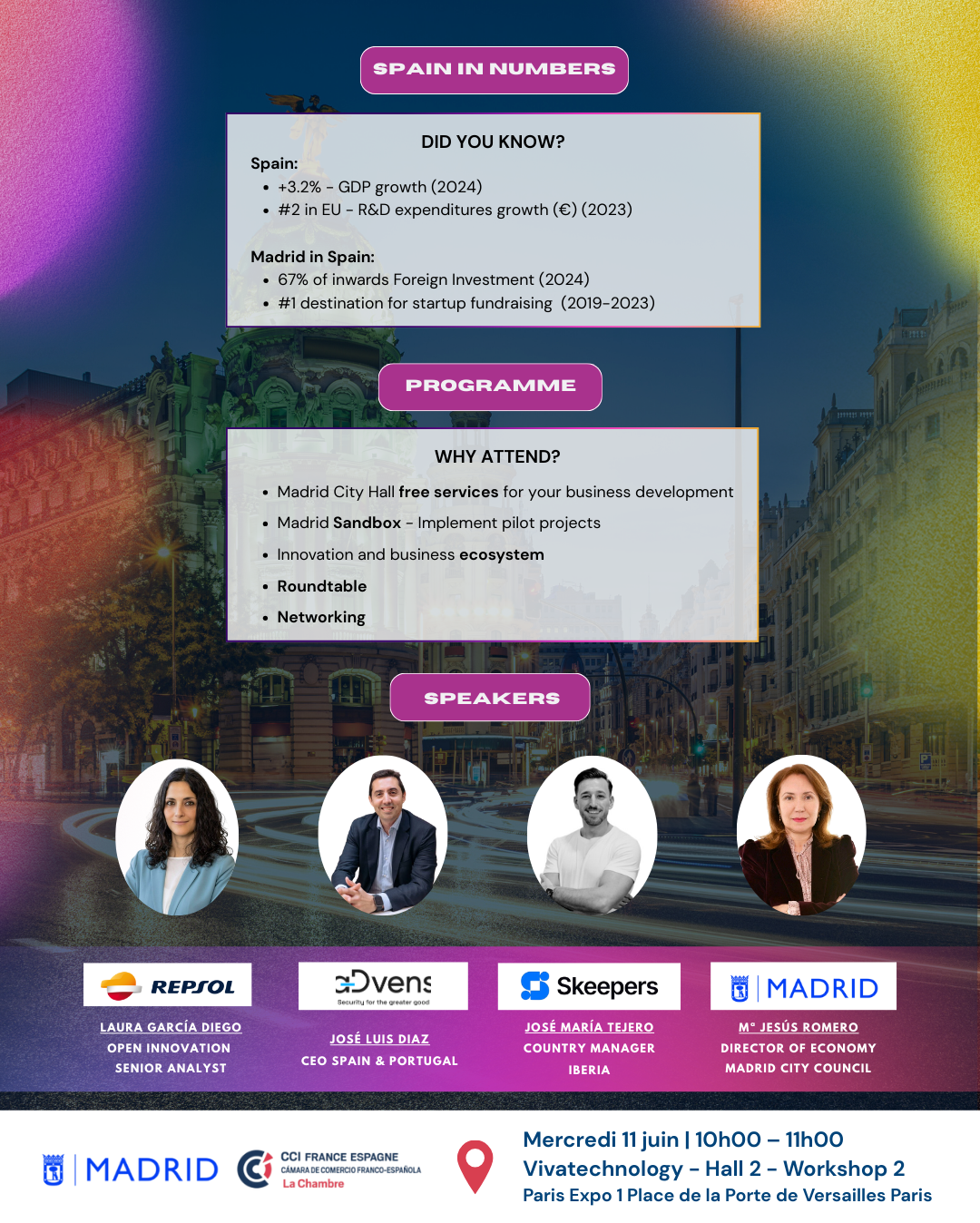 Atelier, dans l’enceinte de VivaTechnology, présentation de l’écosystème madrilène de l’innovation avec le programme suivant :
