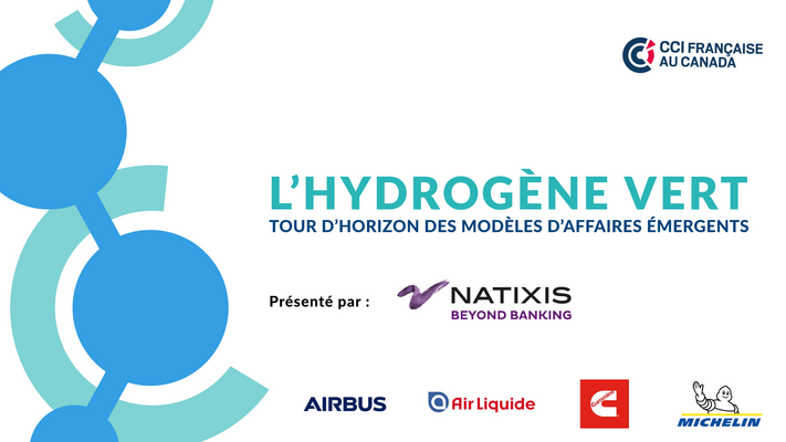 La CCI France Canada organise le 14 avril à 17h00 (heure française) un panel d’exception sur l’Hydrogène vert composé des acteurs principaux et maillons de la chaine économique du développement de l’hydrogène : Airbus, Air Liquide, Cummins, Michelin et Natixis.