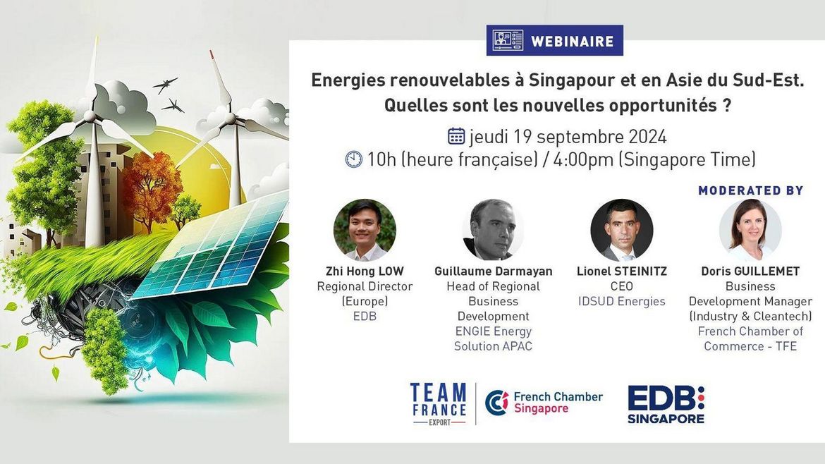 Participez à un webinaire exclusif sur les énergies renouvelables, organisé par la Chambre de Commerce Française à Singapour en partenariat avec l'EDB.
