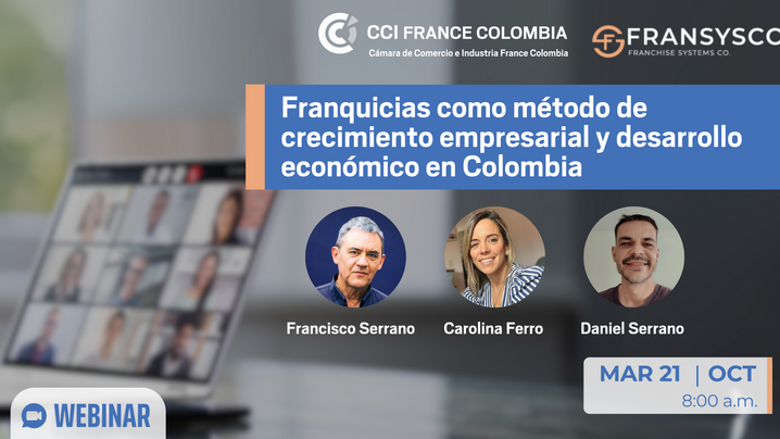 La CCI France Colombia, en partenariat avec Franchise Systems, vous invite à participer au webinaire “Les franchises comme méthode de croissance des entreprises et du pays”, qui se tiendra le mardi 21 octobre 2025, via ZOOM.