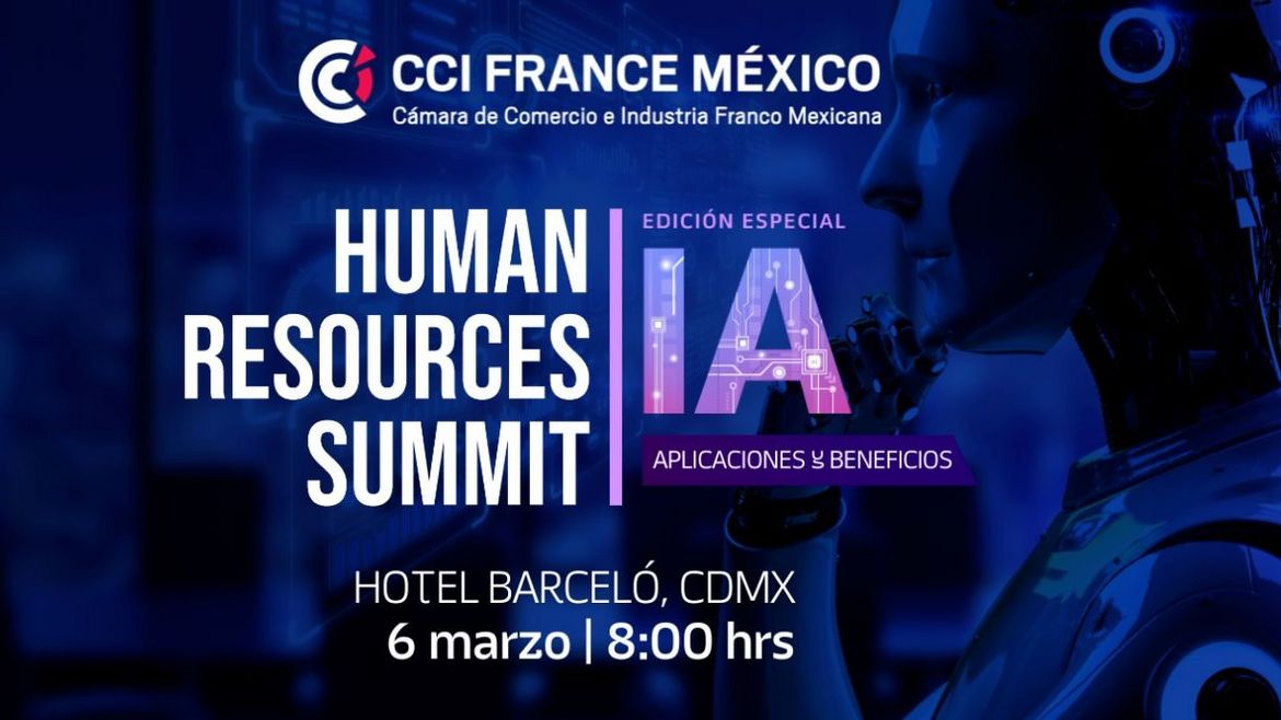 La CCI France Mexique organise un RH Summit - Edition spéciale IA, le 6 mars 2025, à l'Hôtel Barceló à México.