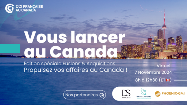 La CCIF Canada organise une nouvelle session "Vous lancer au Canada", édition spéciale Fusions & Acquisitions, le jeudi 7 novembre 2024 de 8h à 12h30.