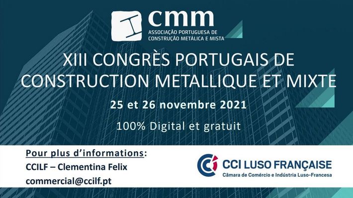 La CMM - Association Professionnelle de la Construction Métallique et Mixte au Portugal lance son 13ème Congrès. Cette année l'évènement se tiendra en format hybride et aura comme thème central la "Digitalisation". La CCI France Portugal est partenaire institutionnel de l’évènement.