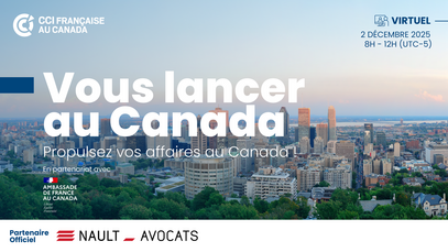 Le 2 décembre 2025Vous envisagez de vous implanter au Canada ? Ne manquez pas ce rendez-vous virtuel le mardi 2 décembre !