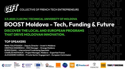 Le 3 novembre 2025The CEFT are plăcerea de a vă invita la un eveniment deosebit dedicat mecanismelor și programelor de sprijin pentru companiile și startup-urile