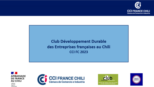 Le Club Développement Durable des entreprises françaises a été créé en 2018 lors de la Semaine Française de la CCIF Chili en collaboration avec l'Ambassade de France. Il y a actuellement 64 entreprises françaises membres du Club basée au Chili ou en France. Il fait partie du réseau des “Clubs Ville durable et Transition énergétique" créé par le gouvernement français.