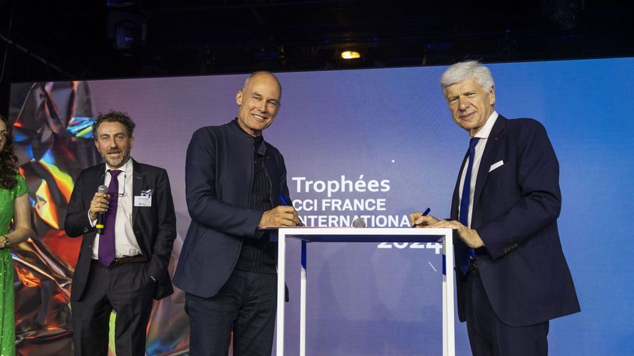 Le partenariat entre CCI France International et la Fondation Solar Impulse a été officiellement signé par Arnaud VAISSIÉ, Président de CCI France International et Bertrand PICCARD, initiateur et Président de la Fondation Solar Impulse, lundi 24 juin 2024 lors de la soirée des Trophées CCI France International.