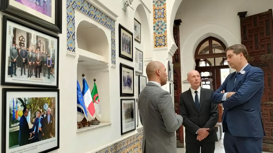 C'est en marge de cet évènement que Halim AMMAR KHODJA, DGA et Patrick COUTELLIER, Vice-Président de la CCI Algéro Française ont pu accueillir Olivier BECHT Ministre Délégué du Commerce Extérieur de l'attractivité et Français à l'étranger dans les locaux de la Chambre.