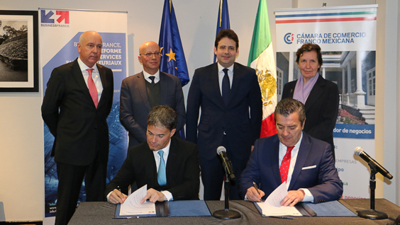 En application de l’accord de partenariat stratégique pour le développement des PME à l’international signé le 11 mars 2015 par la Directrice Générale de Business France, par le Président de CCI International et le Président de CCI France International ; et soucieux d’améliorer la coordination et la complémentarité du dispositif français d’appui aux entreprises, la Chambre de Commerce Franco Mexicaine et Business France Mexique ont signé le mercredi 10 février un accord liant les deux institutions. Cette convention a pour objectif de simplifier et de rendre plus efficace l’accompagnement des entreprises françaises souhaitant s’installer sur le territoire mexicain.